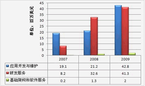 軟通動力最大的綜合IT服務業務主要包括以下三個方面:應用開發和維護服務、研發服務、基礎設施和軟件服務。近年相應業務分支機構的收入情況如下: