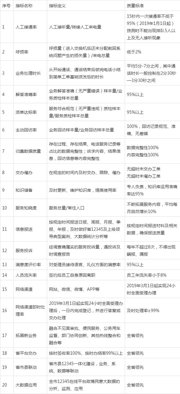 三、業務運營質量標準