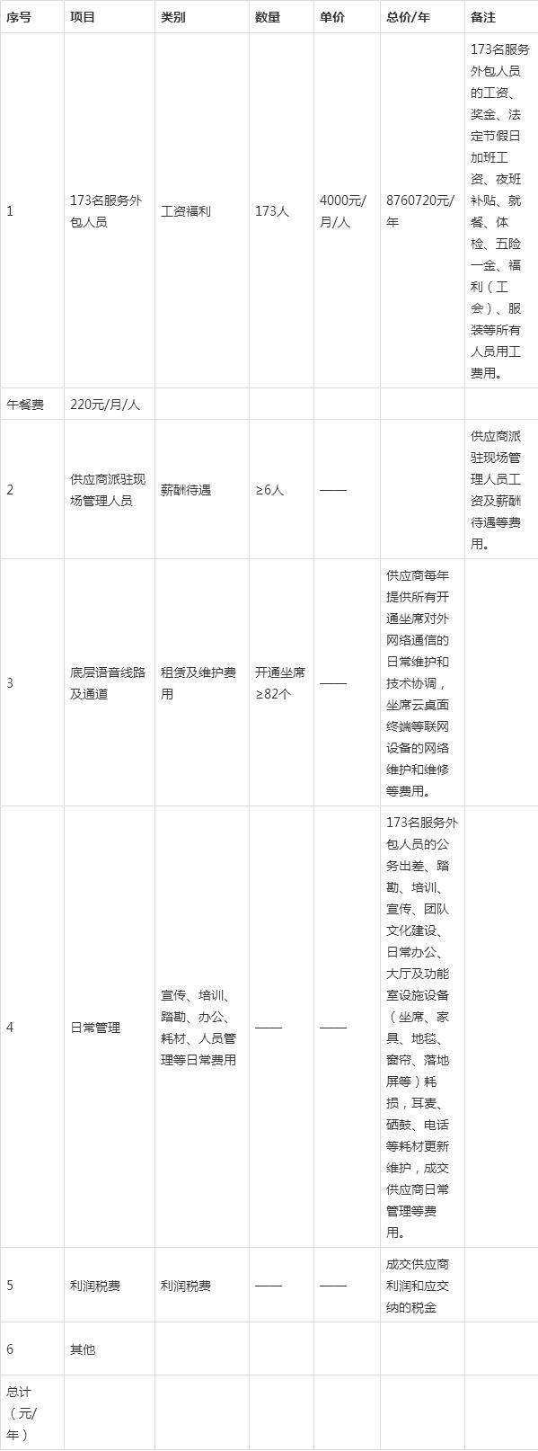 3.1 每個崗位人員數量:交易供應商會根據現場實際情況,結合各種輔助管理崗位(質檢、培訓、知識庫、大數據、技術支持、人力資源、多媒體策劃、后勤保障等)根據主叫行業要求,參照主叫行業標準進行整體配置。
