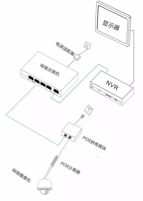 本方案中交換機與PoE供電器相連,PoE供電器給網線加電,傳輸到終端。該方案有利于擴大原有布線網絡,對原有網絡無影響。